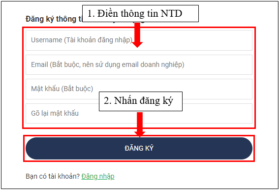 Bước 2: Nhập các thông tin và đăng ký tài khoản